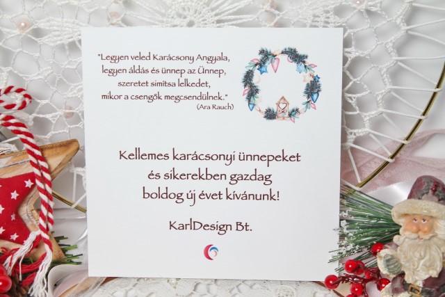Azoknak a cégeknek ajánljuk az egyoldalas karácsonyi képeslapot, akik előnyben részesítik az egyszerűbb, kicsit modernebb formákat.