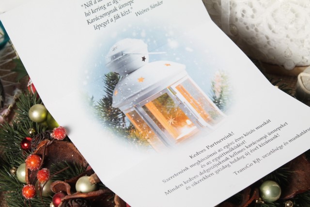Hajtogatott karácsonyi képeslap egy elegáns stílusú klasszikus forma.