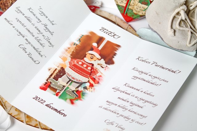 A képeslap belső oldalán lesz olvasható az idézet, a jókívánság és a köszönet szöveg.