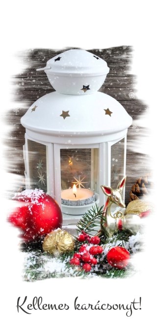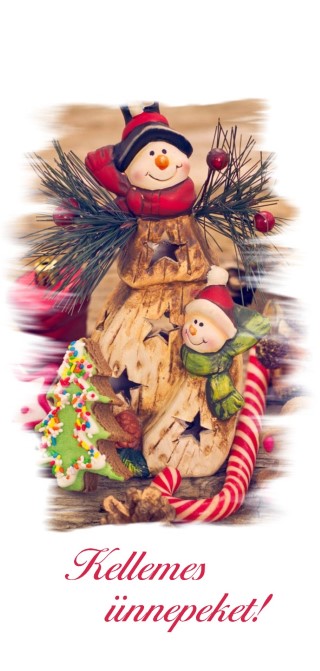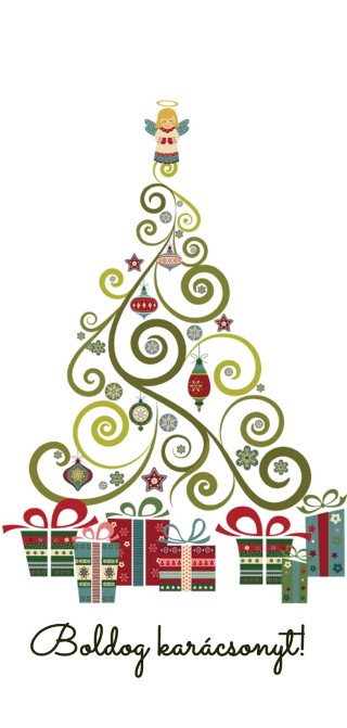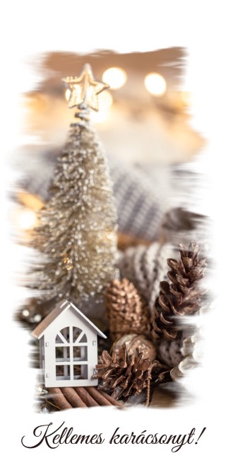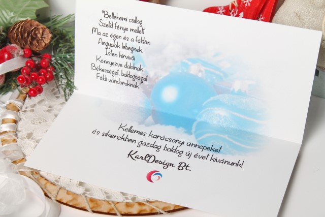 A nyitó oldalon található a felirat pl.: Karácsonyi üdvözlet, Boldog karácsonyt!, Kellemes ünnepeket! és a logó.
